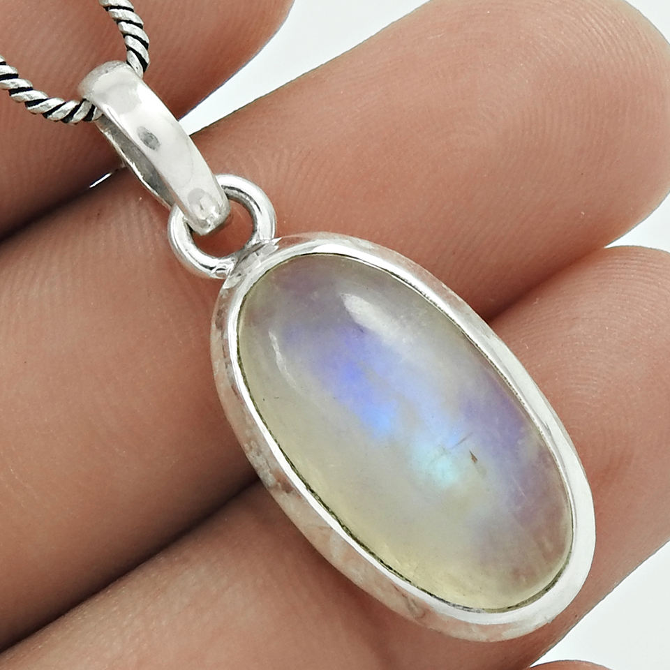 Top Selling Product 925 Sterling Silver Natural Blue Flash Rainbow Moonstone Oval Shape Pendant Handmade Jewelry Wholesale Price