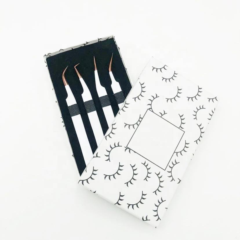 Top Selling Professional White Rose Gold Stainless Steel Hand Made Custom Logo Plasma Coated Pointed False Eyelash Extension