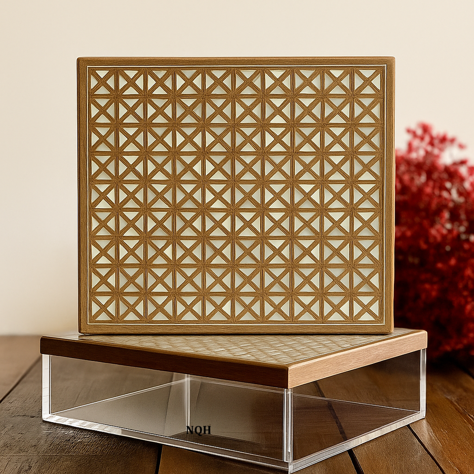 Top Selling Ramadan Eid 2026 Brown Square Wooden Mother Pearl Acrylic Storage Box Jar Handmade Modern Luxury Custom Logo