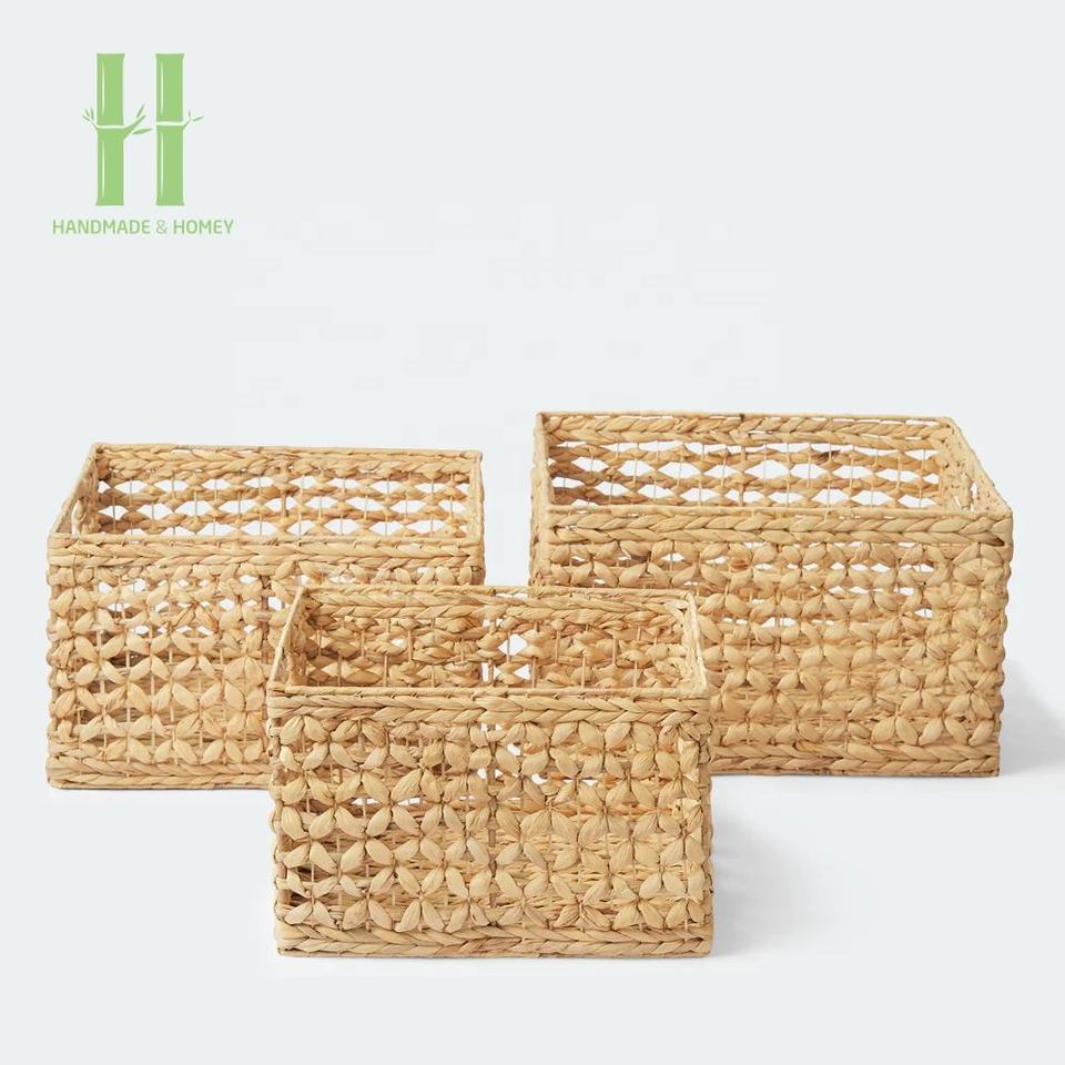 Top Selling Rectangular Woven Basket Water Hyacinth Custom Logo OEM Accepted Laundry Storage Rack From Vietnam Factory
