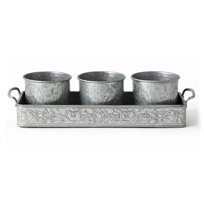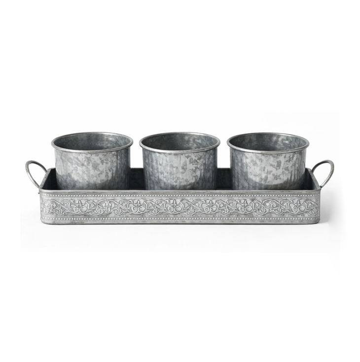 Top Selling Rustic Galvanized Metal Flower Pots Set with Tray for Indoor Outdoor Garden Decor Customized Size Shape