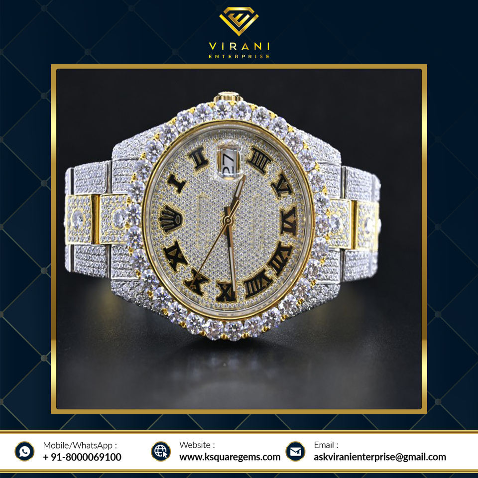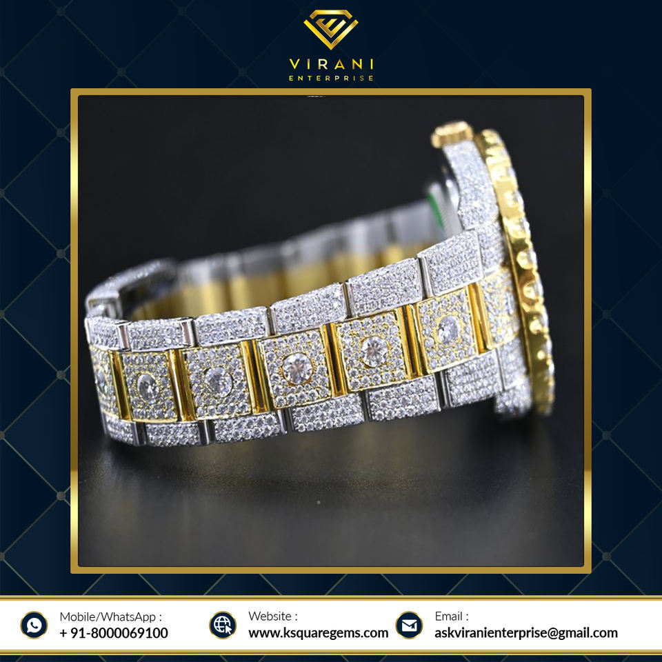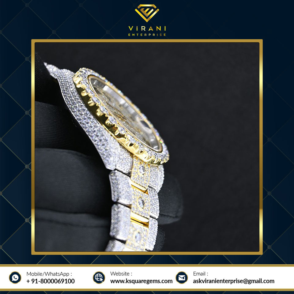 Top Selling Stainless Steel Moissanite Watch VVS Clarity Diamond Studded Iced Glass Water Resistant Custom Logo Available