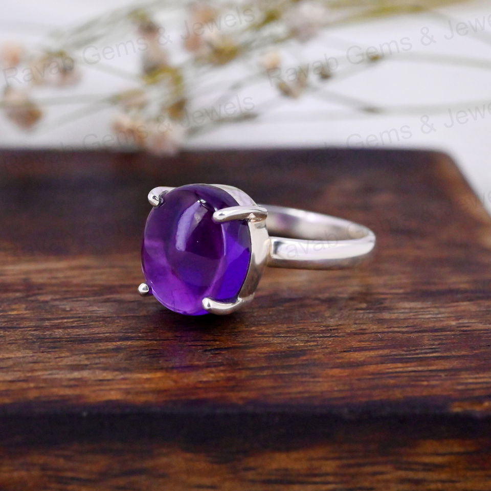 Product Name:Natural Amethyst Sterling Silver Oval Prong Ring