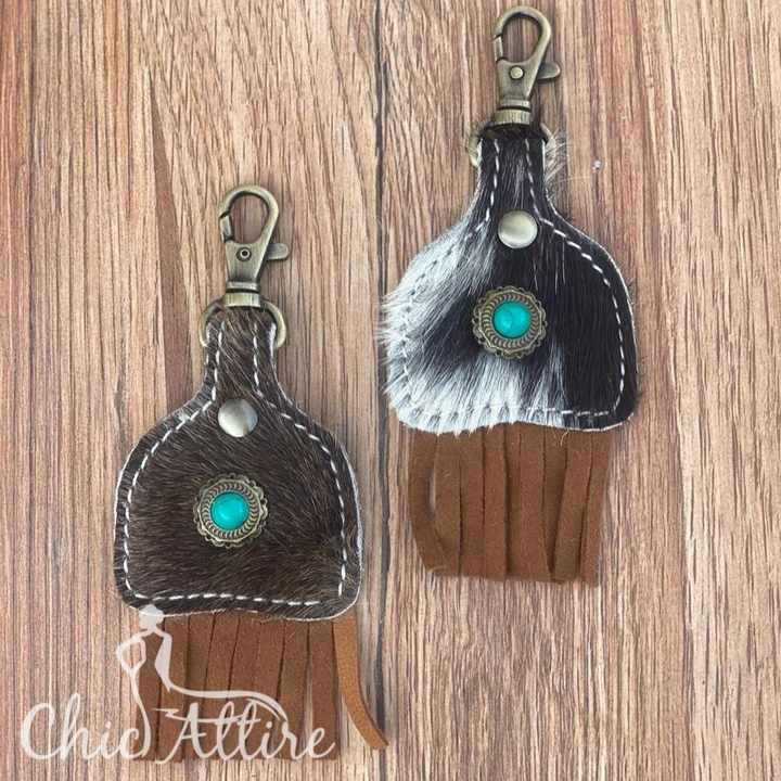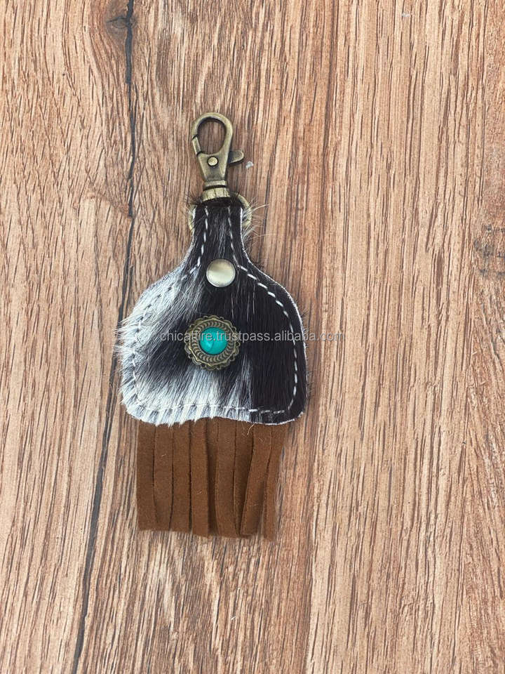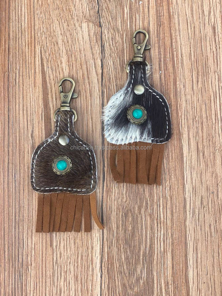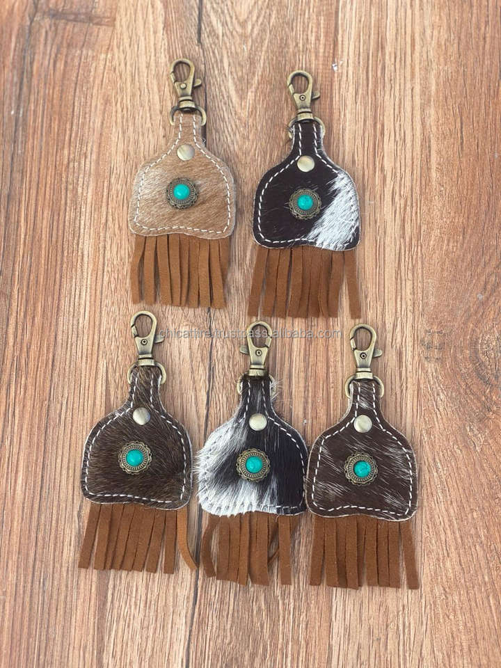 Product name:Western Stylish Cowhide Leather Turquoise Stone Fringe Key Fobs