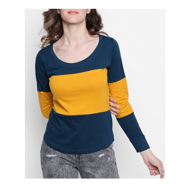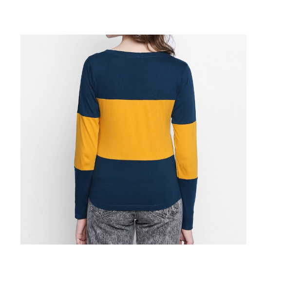 Top Selling Summer Trendy Slim Fit Yellow and Blue Color Women Stylish T Shirt Available in Reasonable Market Price