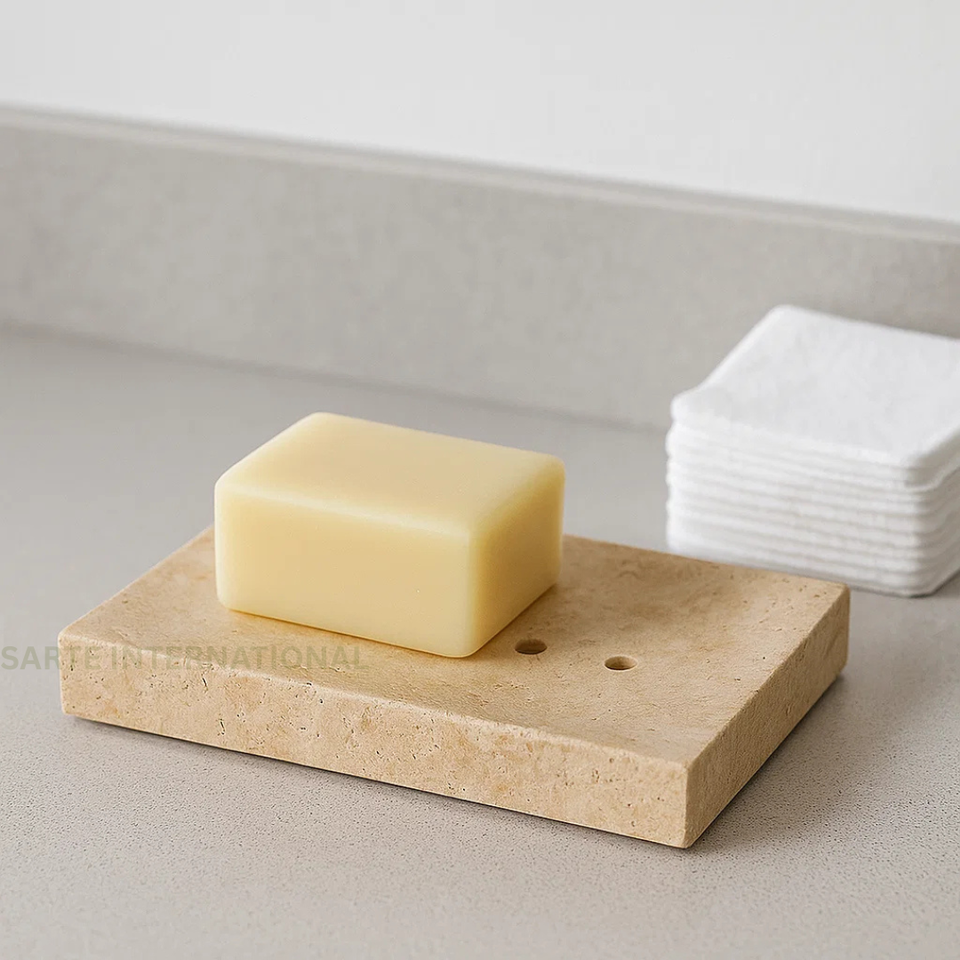 waterproof, Eco-Friendly, self drain, 100% Natural Travertine Stone, Handmade Polished Smooth Surface, Oval with Drainage Slot Design, Beige / Cream Natural Stone Tone, Modern Minimalist Luxury Bathroom Accessory, Long-Lasting and Scratch Resistant, ustainable and Natural Material, Prevents Soap from Melting Quickly, Unique Handmade Stone Craftsmanship, Suitable for Soaps, Sponges, Small Accessories, Stays Stable on Countertop, Easy to Clean and Washable, Bathroom, Washbasin, Kitchen, Spa, Hotels, Resorts, Premium Hotel and Villa Bathroom Decor, Available in Sizes, Shapes, and Colors, Solid Heavy Stone for Stable Placement, Each Piece Has Natural Stone Veins and Texture, Withstands Warm and Moist Conditions, Non-Toxic, Natural, Eco-Conscious, Ideal for Daily Use, Gifting, and Luxury Bathroom, Luxury modern bathroom accessory, Eco-friendly and highly durable, Smart drainage slot design, Multi-purpose daily useFeature