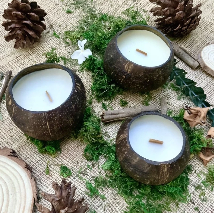 Top Selling Vietnam Luxury Aromatic Coconut Shell Bowls Scented Candle Wood Wick Custom Gift Box With Flowers Factory Price
