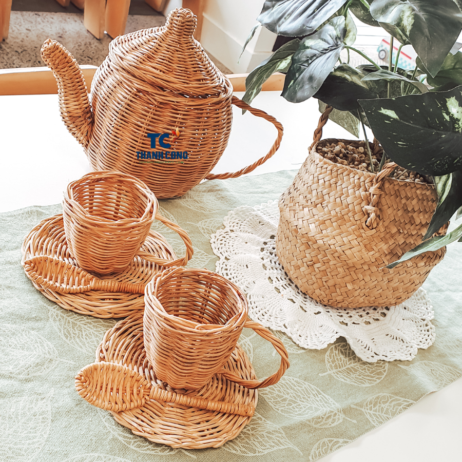 Top Selling Vintage Inspired RATTAN TEA CUP SET Safe RATTAN TOY KIDS for Role Playing Games and Stylish Toddler Corner