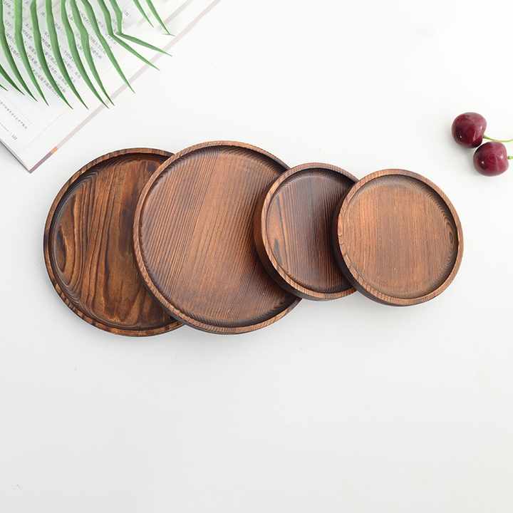 Top Selling Vintage Pine Tray Round Coffee Bread Snack Fruit Blank Wooden Coaster Dinner Plate Household Tray Wooden Tray