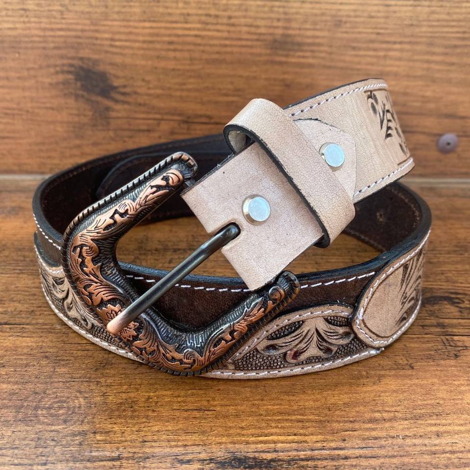 Top Selling Vintage Western Cowboy Style Hand Tooled Leather Alloy Buckle Belts Handmade Genuine Leather Floral Belts for Unisex