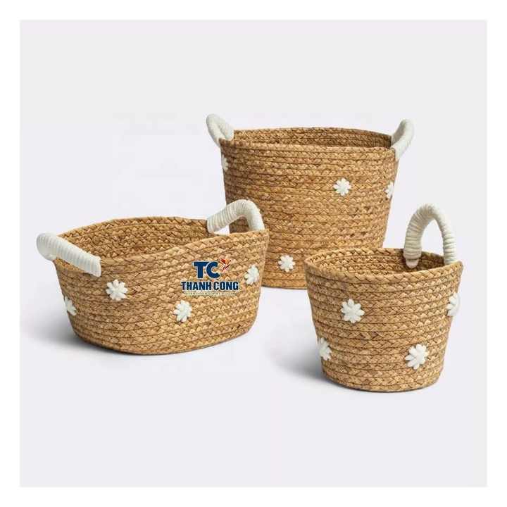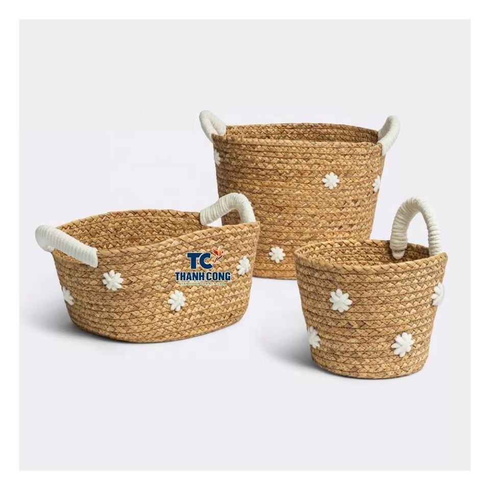 Top Selling WATER HYACINTH BABY STORAGE BASKET with Cotton Rope Handles Eco Decor Vietnam Handicraft Supplier