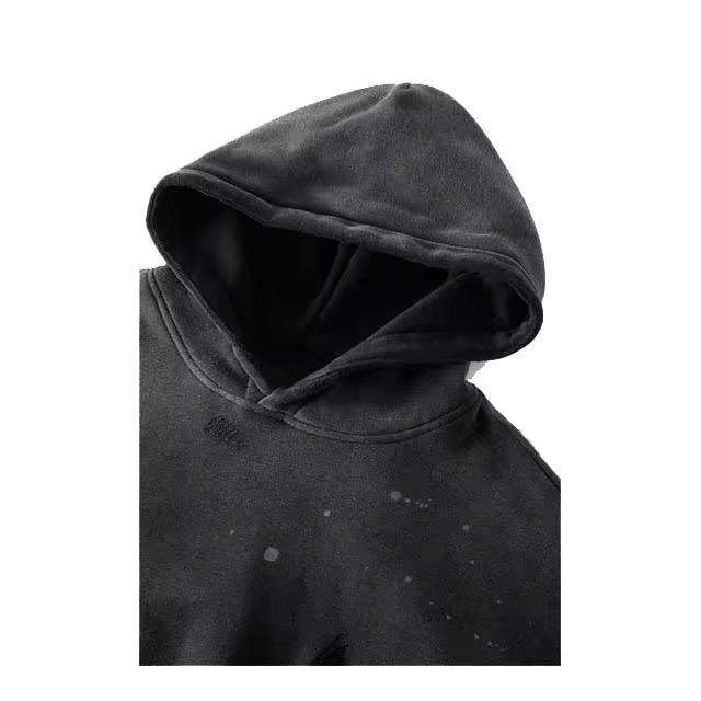 Top Selling Winter Men's Acid Washed Distressed Hoodies Long Sleeve 100% Cotton Embroidered OEM Wholesale
