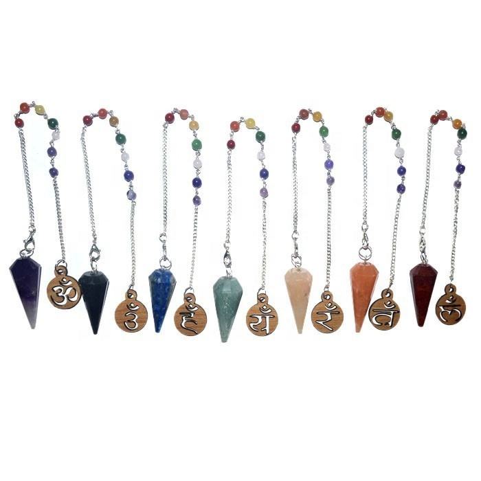 Top Selling Witchcraft Supplies Crystal Pendulum Chakra Sanskrit 12 Faceted Beads Pendulums Set