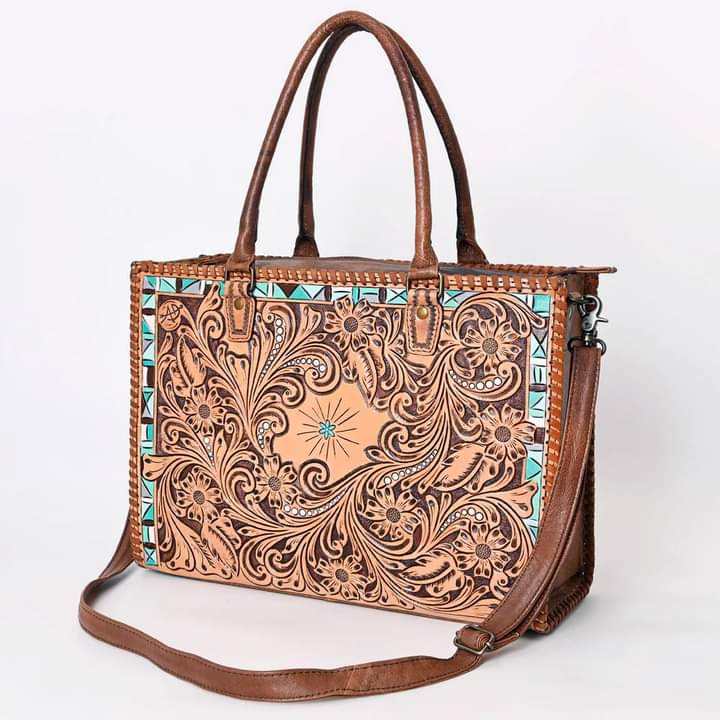 Top Selling Women's Western Leather Engraved Design Shopping Bag at Best Price