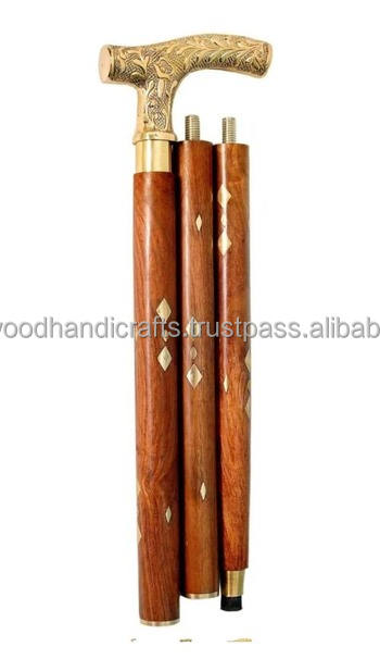 Top Selling Wooden Walking Stick With New Design Brass Handle Folding Walking Cane Decorative Walking Canes