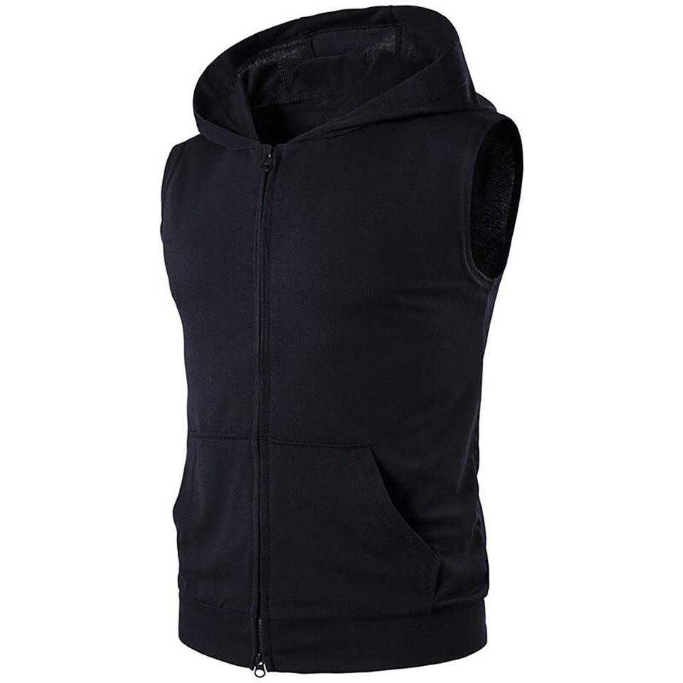 Top Selling Sleeveless Wholesale Hoodies Solid Color Dye Men Sleeveless Zipper Hoodie Custom Sweatshirt Sleeveless Gym Hoodies