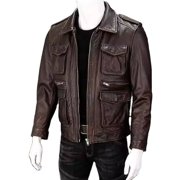 Top Sheepskin Leather Sherpa Jacket Printed Breathable Flame-Retardant High Performance Fur Trim All Seasons for Men