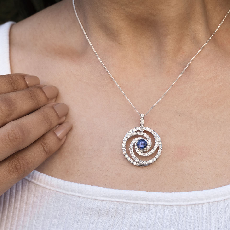 Top Supplier 14k Solid White Gold Natural 6mm Round Cut Tanzanite Spiral Pendant With SI Clarity Diamond Halo Pendant Jewelry