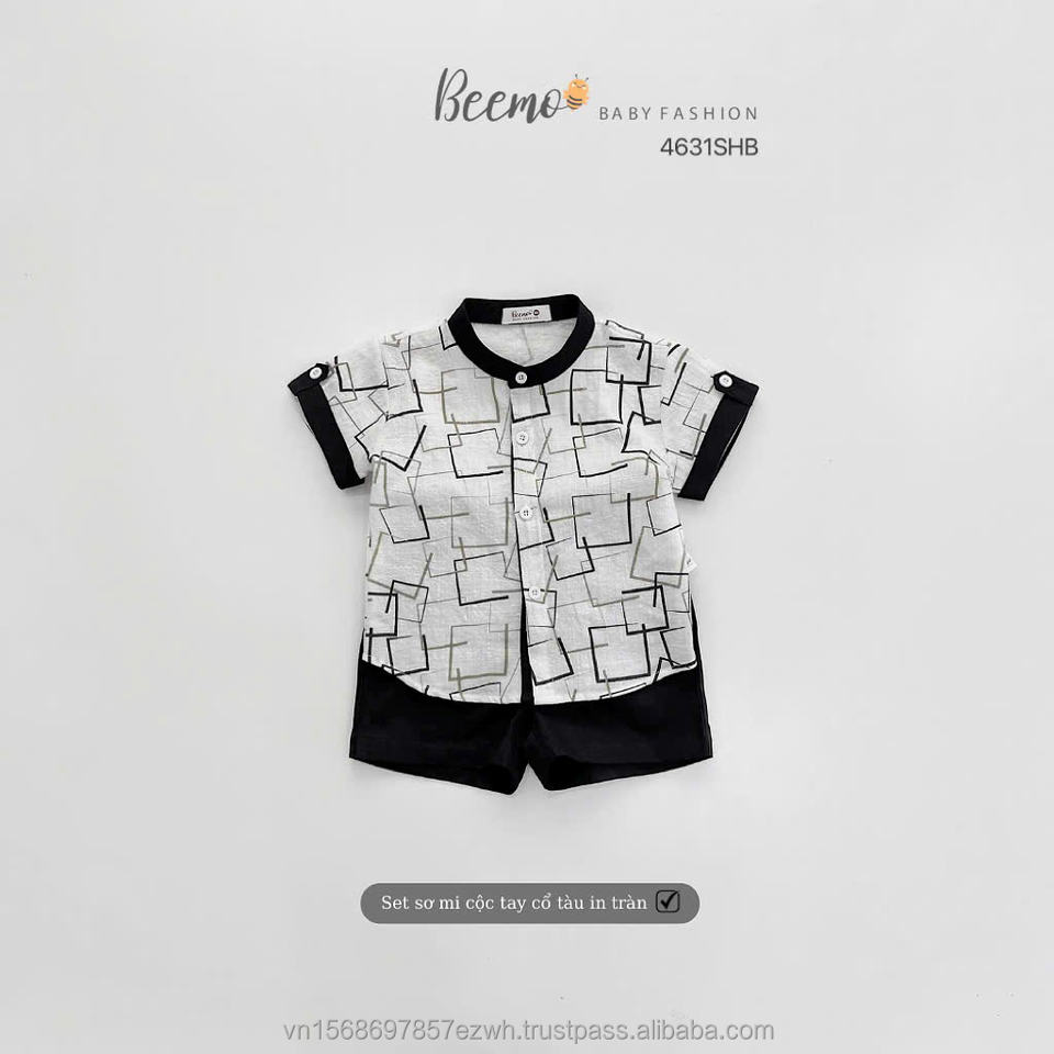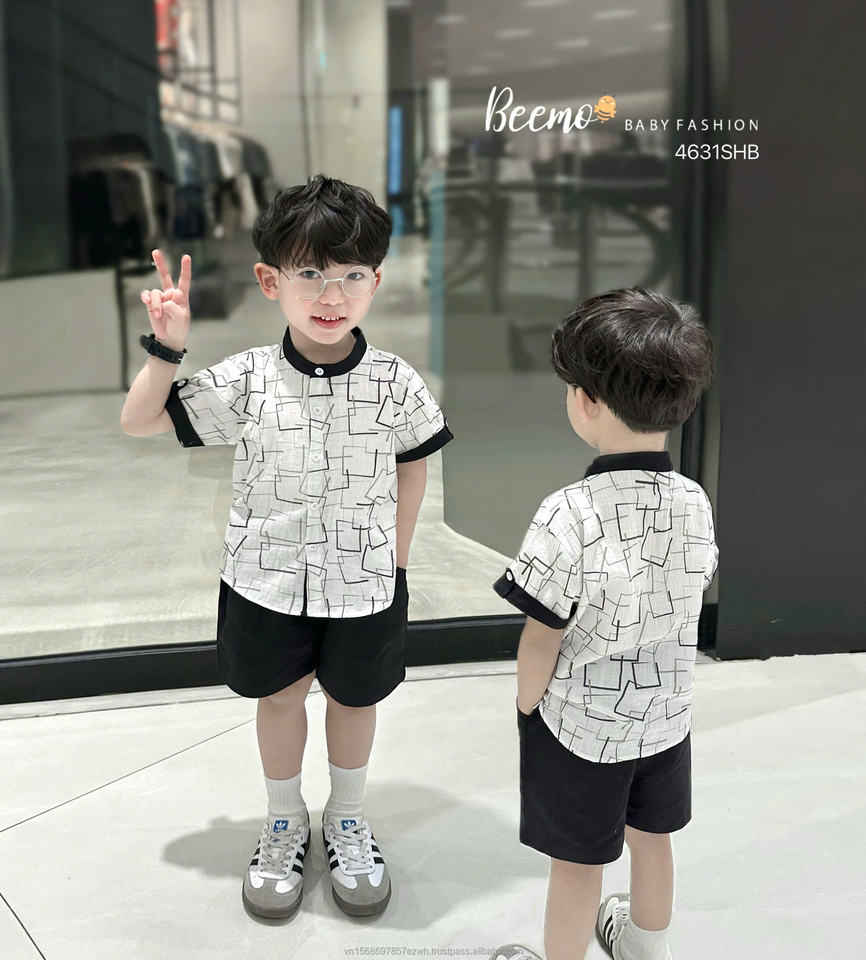 Top Supplier Summer Casual Kids Outfits Set Baby Boys Toddler Clothing Collection Mandarin Boys Shirts and Shorts Clothes Sets