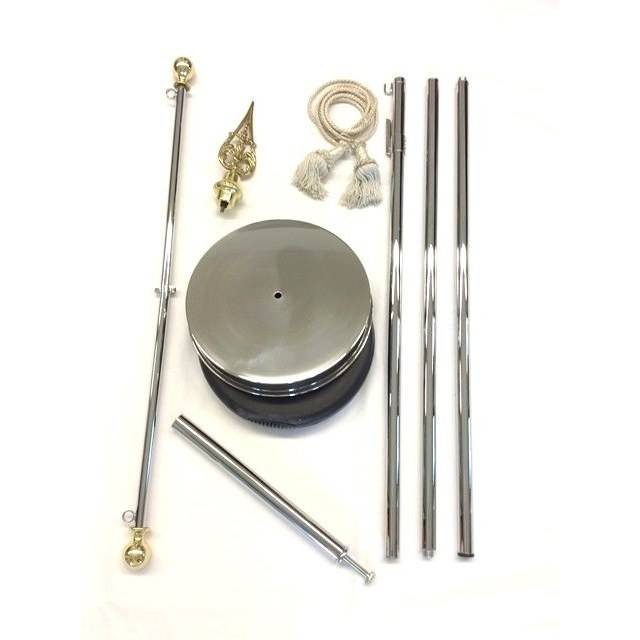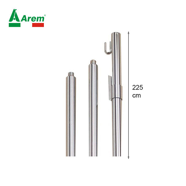 Chromed stainless steel pole divided into 3 screwable pieces for banners