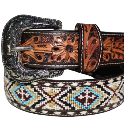 Top-Tier Handmade Customized Design Western Leather Beed Belt Western Cowboy Leather Belt from Wholesale supplier