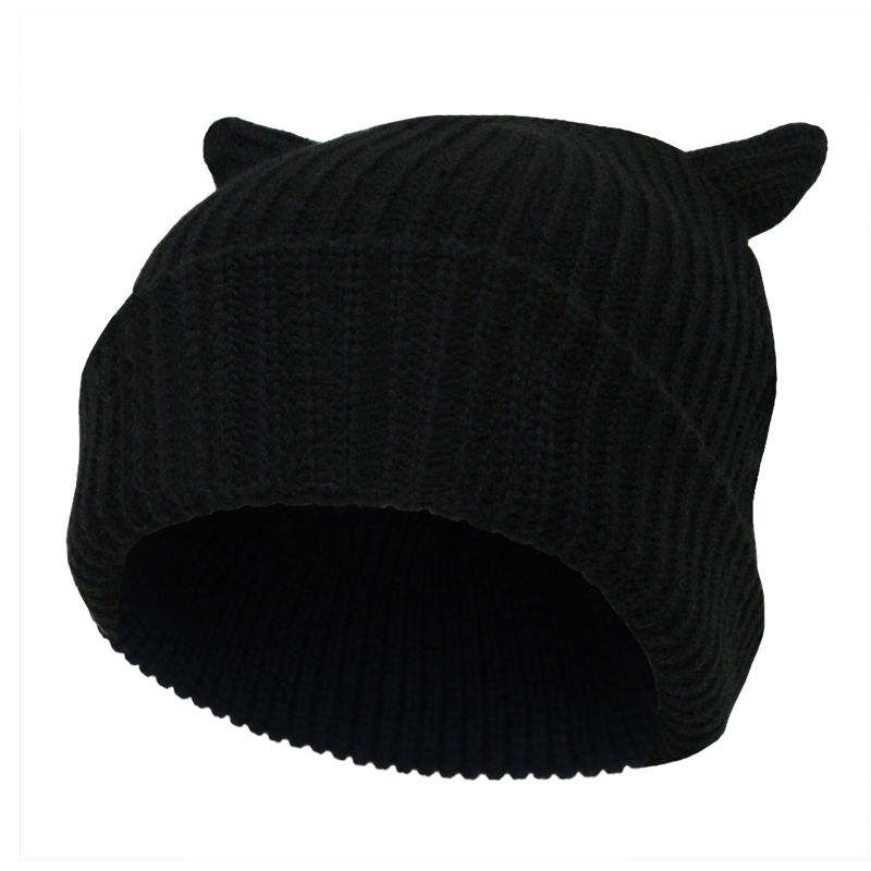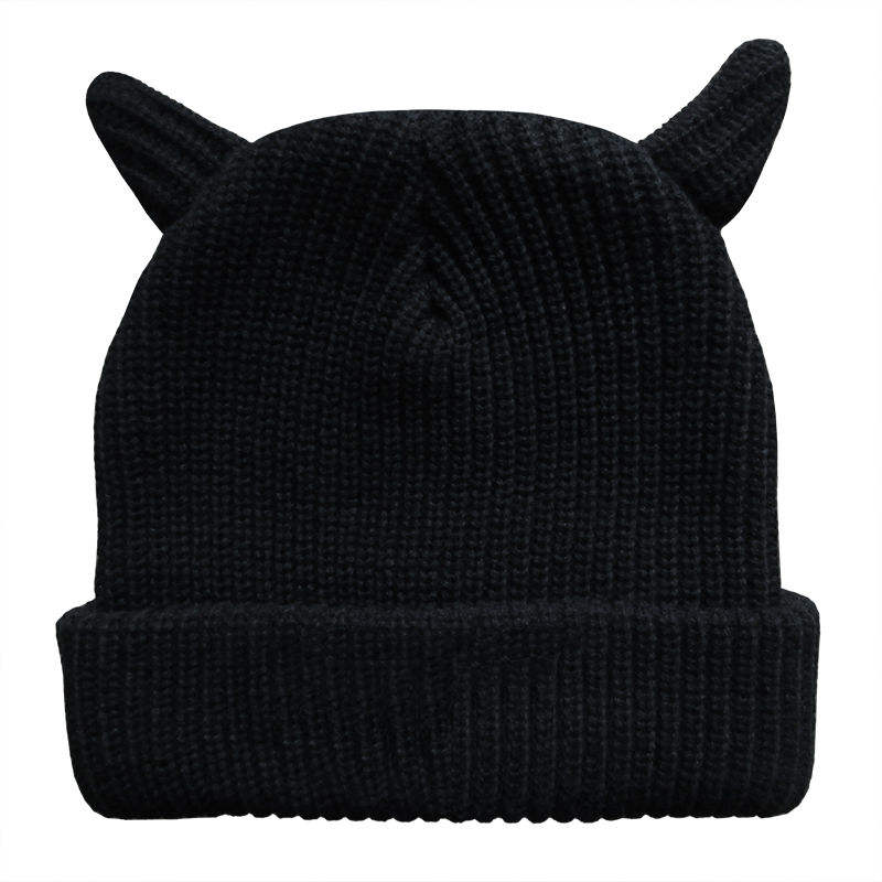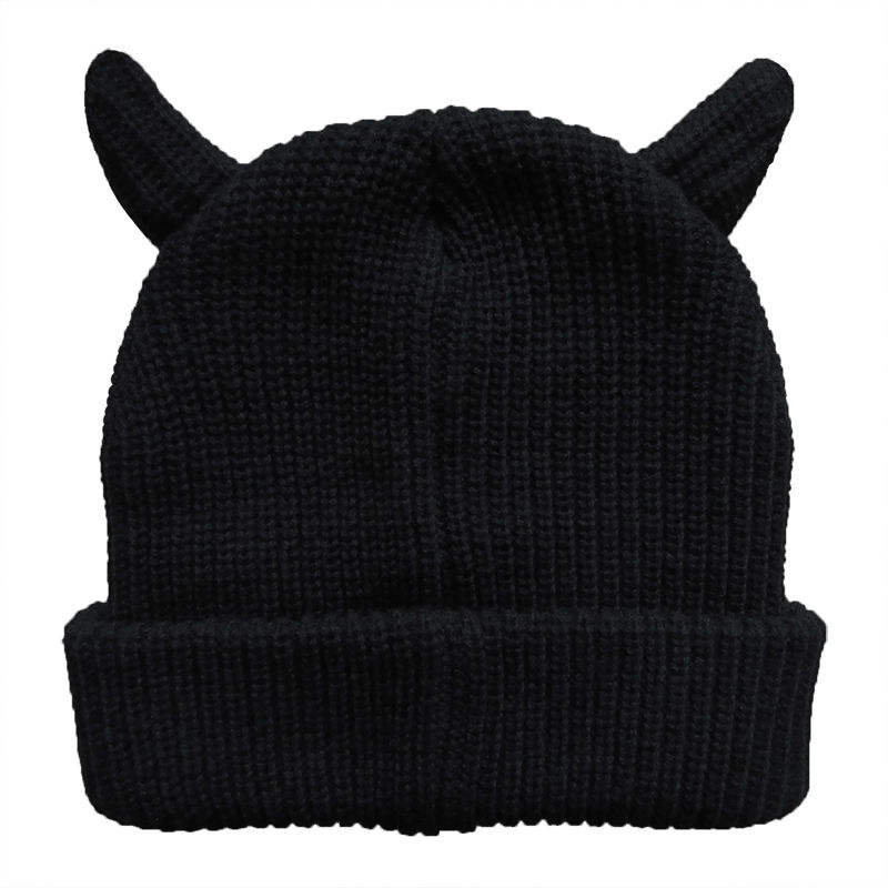 Top Trending 2026 Winter Headwear Solid Black Hat Ribbed Blank Devil Knit Beanie With Horn