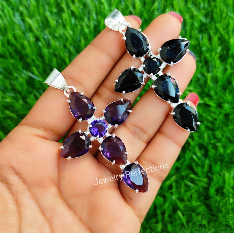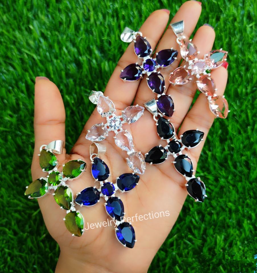 Top Trending Cross Charms Pendants Crystal Gemstone Sterling Silver Plated Cross Necklace Pendants, Fashion Cross Pendant
