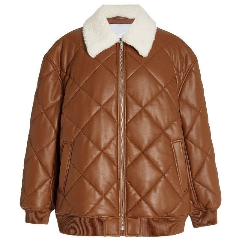 Top Trending Custom Turn-down Collar Fur Design Women's Leather Puffer Jackets Full Sleeve Breathable Waterproof for