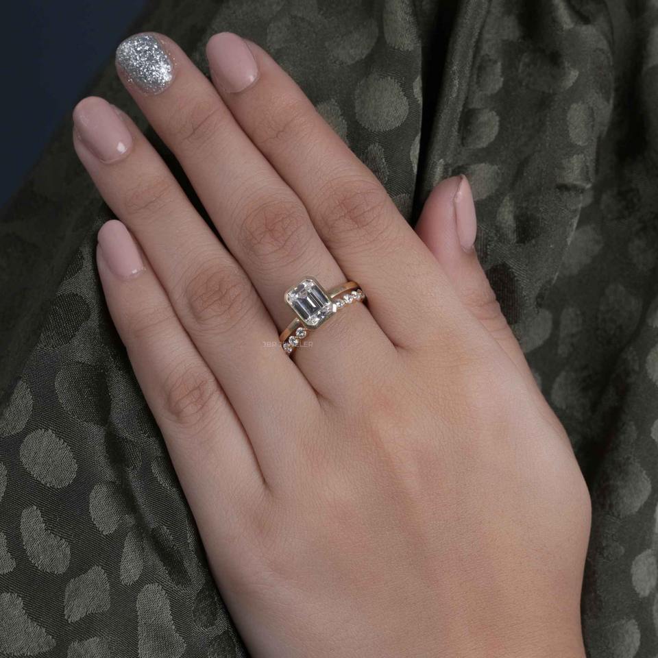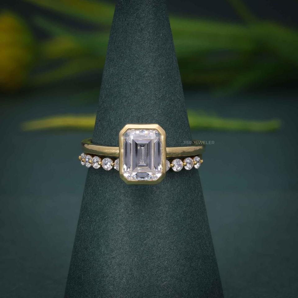 Top Trending Emerald IGI Certified VVS Lab Grown Diamond Bridal Set With 14k Gold Eternity Wedding Band For Women At Low Price
