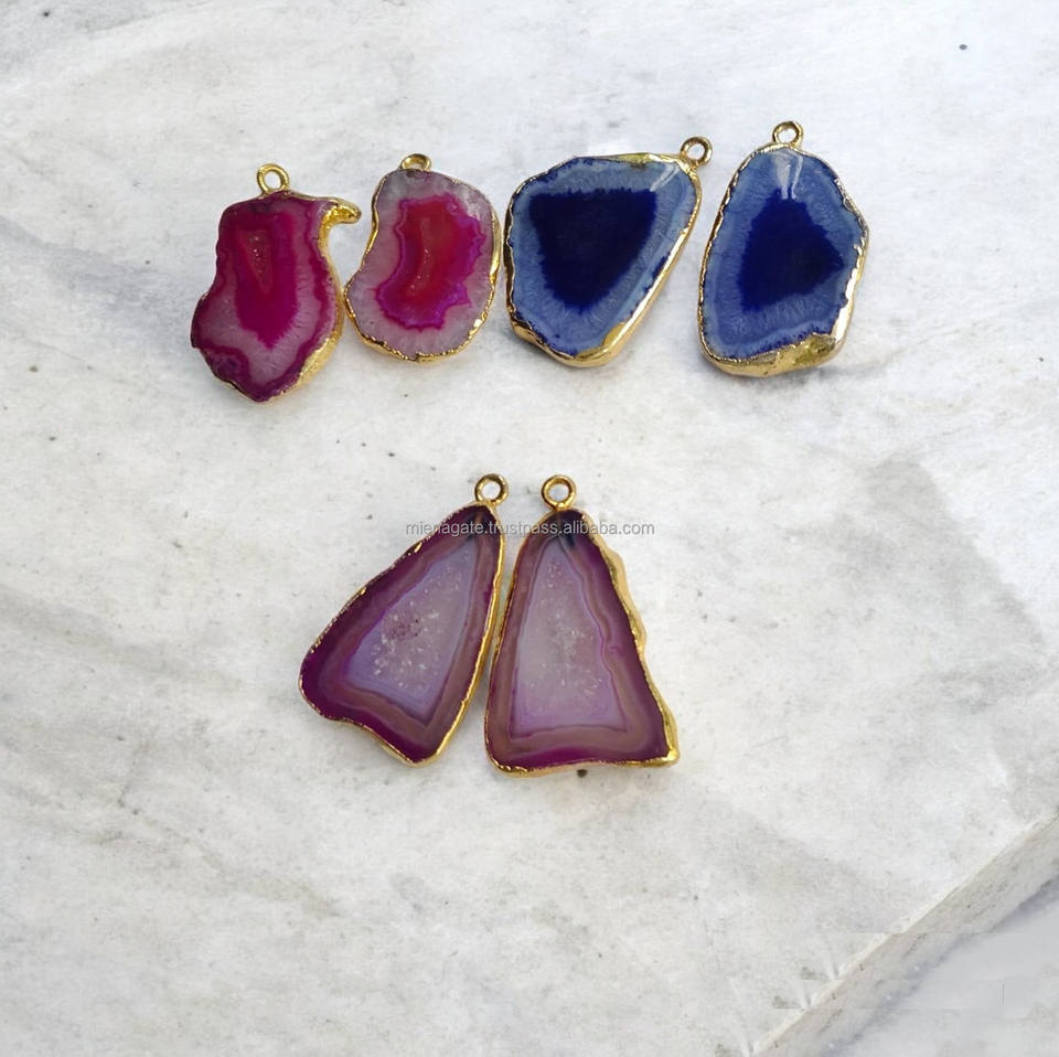 Top Trending High Grade Agate Slice Druzy Earrings Top Selling Fashion Jewelry Real Gemstone Slice Latest Earrings Wholesale