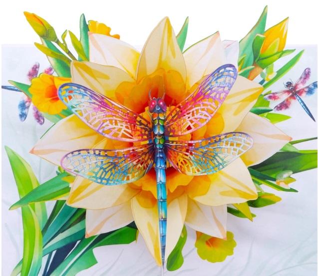 Name:Yellow Daffodils Dragonfly Pop Up Card