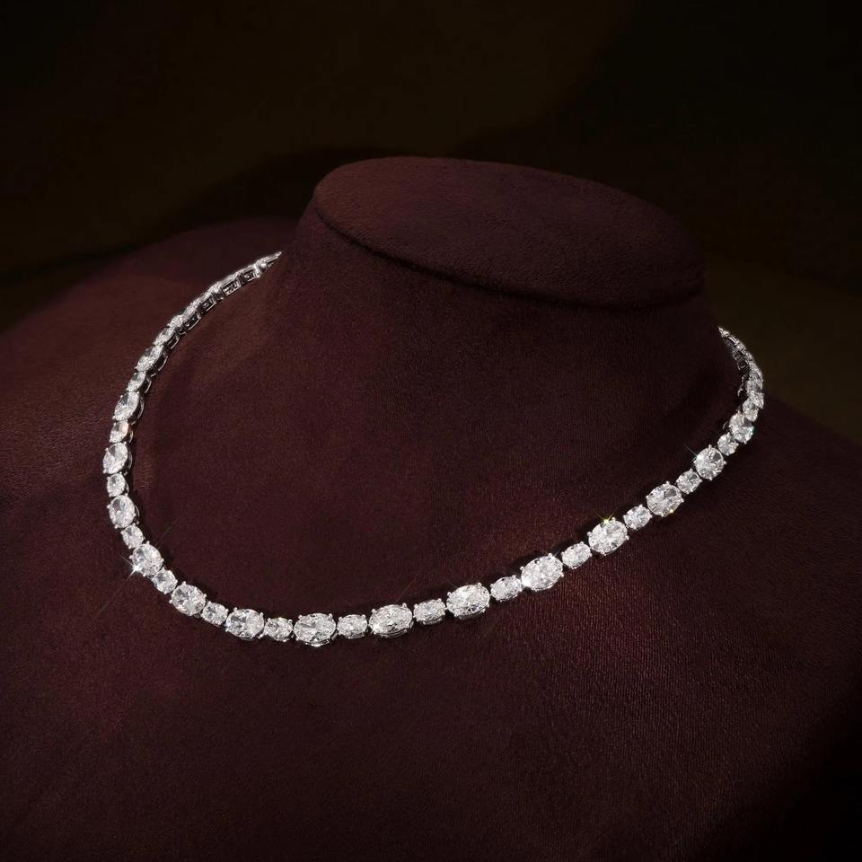 Top Trending Oval Cut VVS Moissanite Tennis Chain With 925 Silver Iced Out Necklace For Women's Luxury Fashion Jewelry Supplier