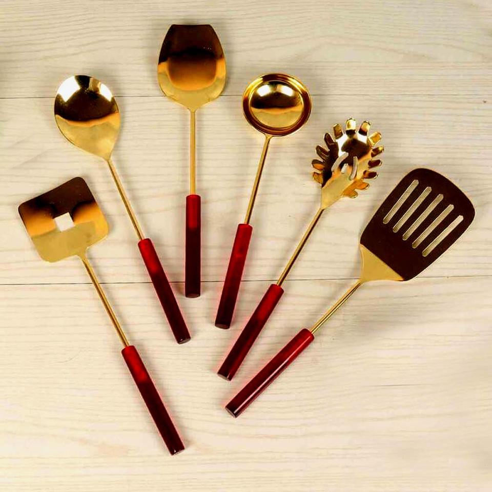 Top Trending Product Glossy Stainless Steel Cutlery Set Gold Mirror Polished Spoon Fork Knife With Red Color Handle Flatware