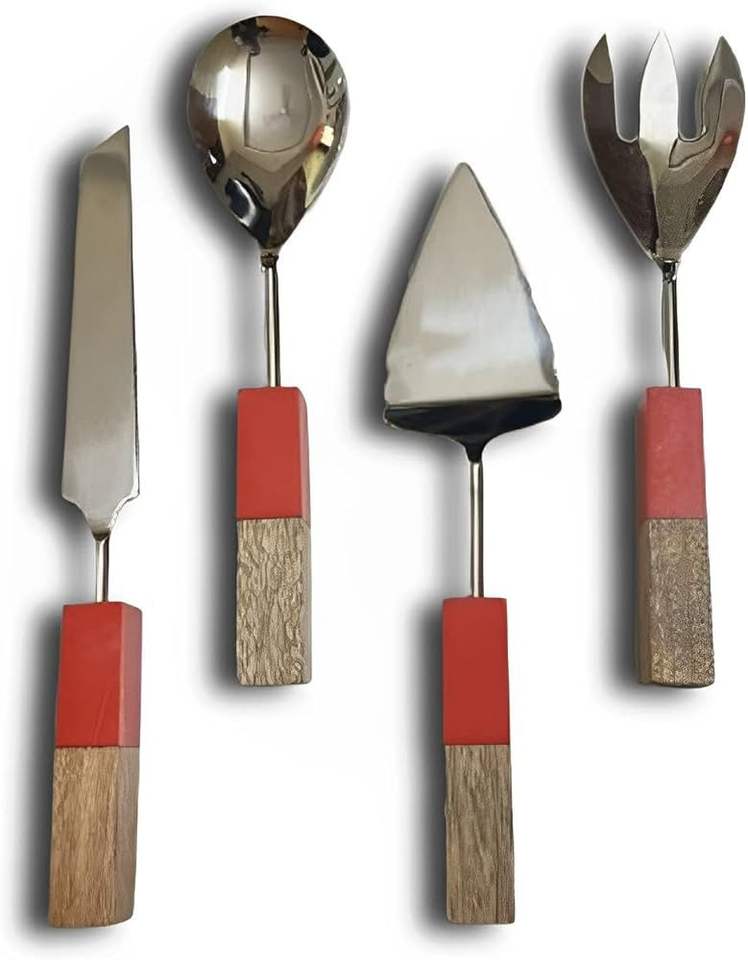 Top Trending Stainless Steel with Wooden Handle Salad Server and Cake Knife Set Luxury Decorative Salad and Cake Server Set of 4