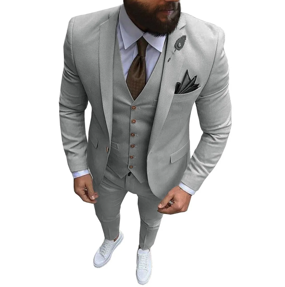 Top Trendy Men Business Casual Suits Tuxedo Formal Dress Pant Coat Blazers Fashion Wear 3 Pieces Men Suit