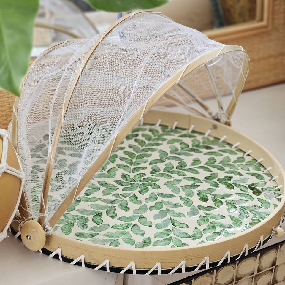 Top Vietnam producer circular pearl shell inlaid tray with folding tent good price food covers for restaurant