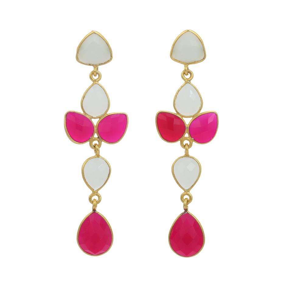 Gold Plated Fancy Design Drop Earrings Top White Milky and Natural Fuchsia Long Lovely Jewelry for Girls and Women