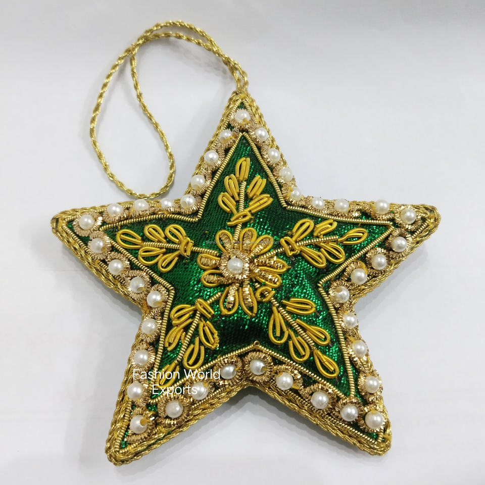 Top Zari Handmade Christmas Star Ornaments Gold Stars Beaded Baubles Festive Hanging Plastic Ornaments for Home and Tree Decor