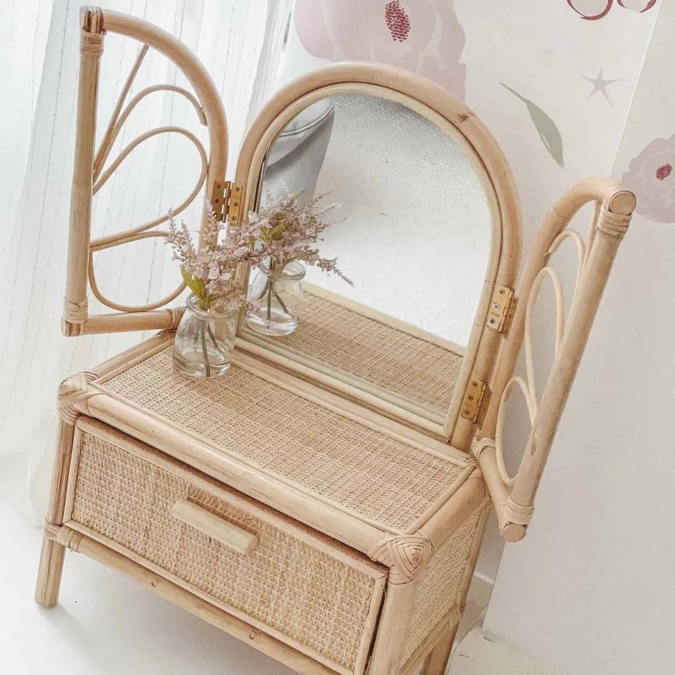 Top Choice Handmade Rattan Makeup Table for Kids Dressing Room Lovely Vanity Make up Small Desks