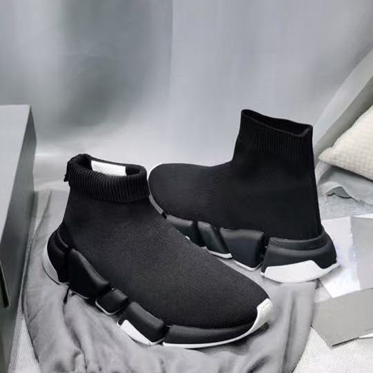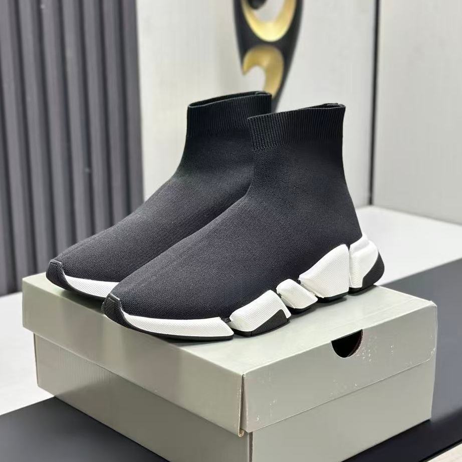 High-end designer's anti-slip black mid-calf knitted casual breathable fashionable trendy luxurious walking shoes