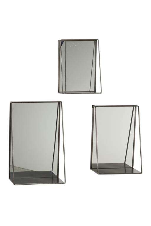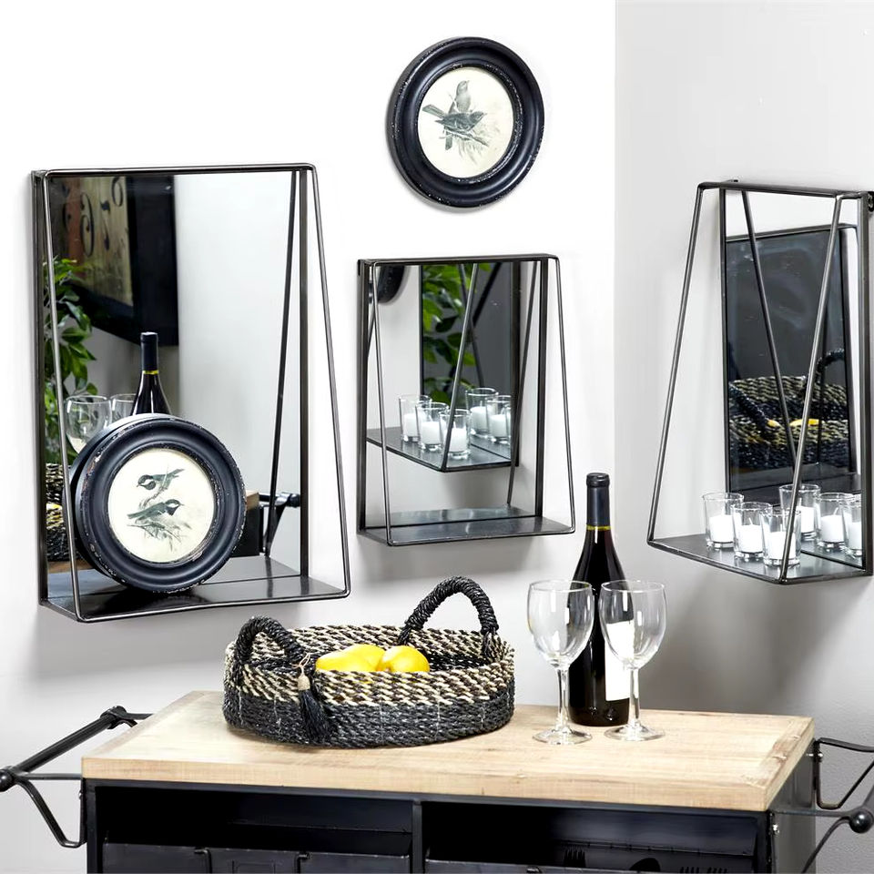 Indian Seller's Top-Grade Modern Full Body Gold Metal 3 Shelves Wall Mirror Set 3 24\" 20\" 16\"H for Home Bathroom Use Sale