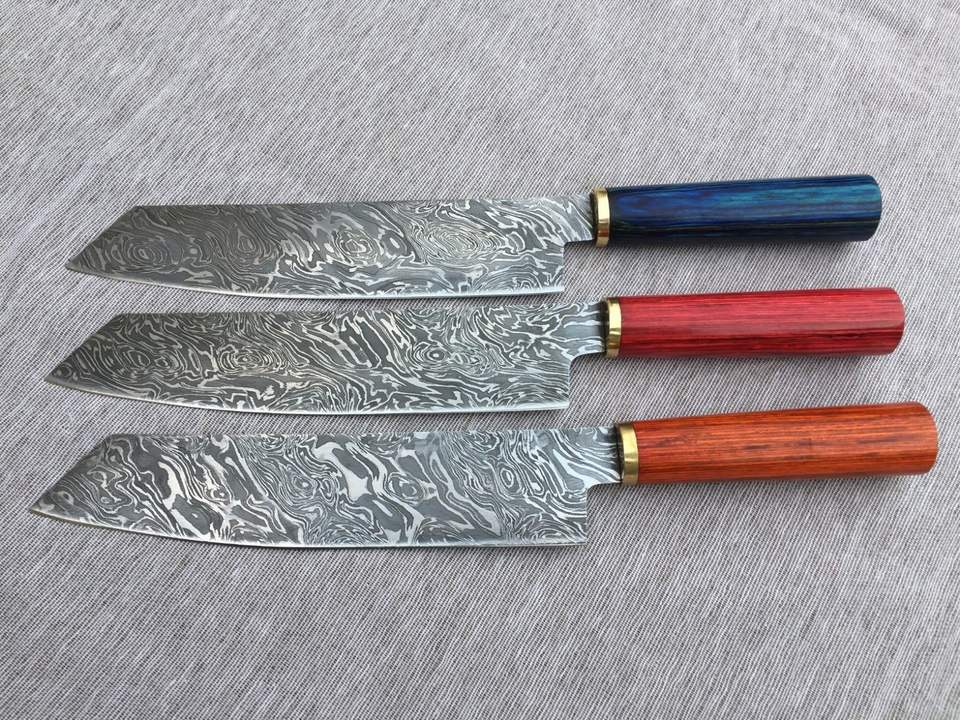 Highly Rated Custom Handmade Damascus Steel Santoku Chef Knife for Kitchen Vegetables Cutting Knife Pakka Wood Leather Sheath