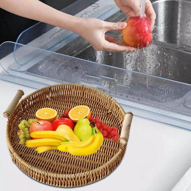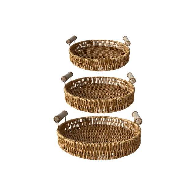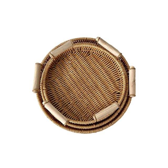 Natural rattan round serving tray with wood handleProduct Name