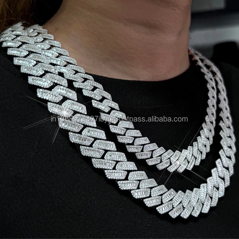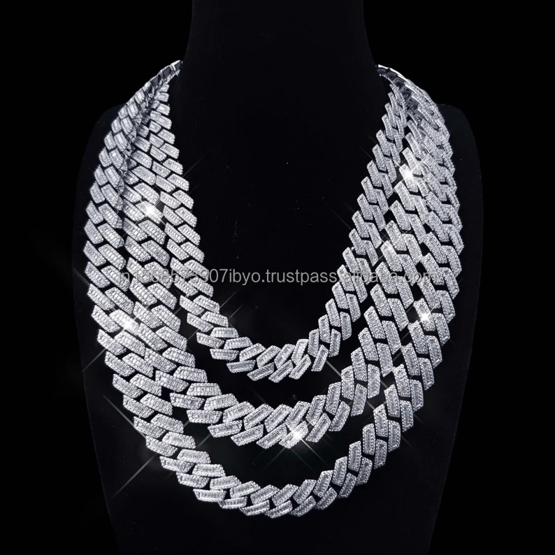 Top Quality Sterling Hip Hop Miami Cuban Chain Iced Out Moissanite Diamond Customized Silver and Gold Designer Necklace