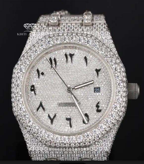 Keywords:Arabic Numeral Moissanite Automatic Watch White Tone