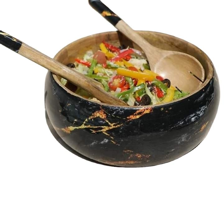 High Quality Custom Eco-Friendly Wooden Salad Bowl with Two Spoons for Kitchen Mixing Accessories