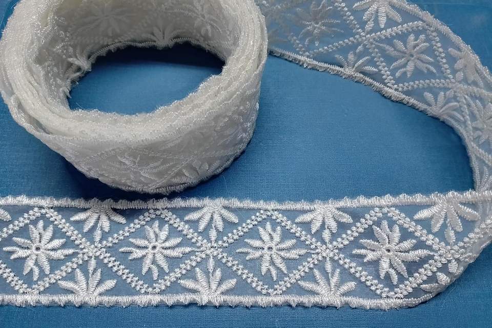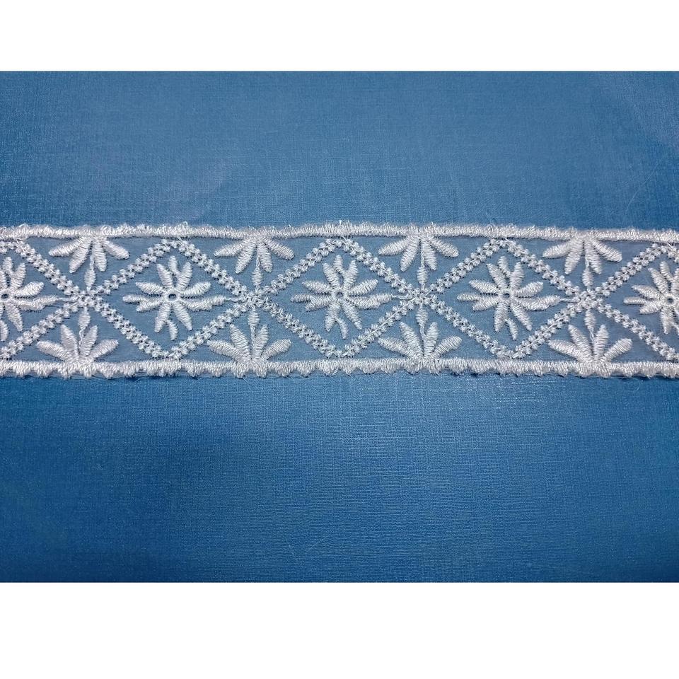 Top sale Breathable Quick-Dry Lightweight White Floral Diamond Pattern 100% Nylon Lace Trim Organza Fabric
