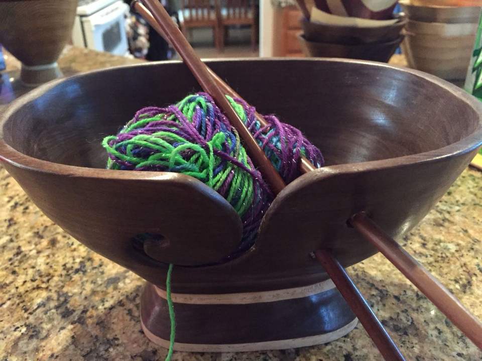 Top selling large wooden bowl handcrafted unique design sewing storage holder portable countertop decoration wooden yarn holder