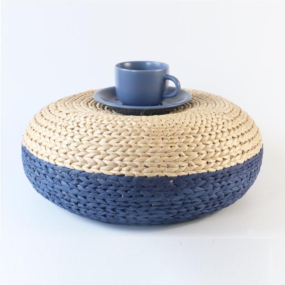 Top selling round water hyacinth pouf for lounge rooms decorative handmade poufs eco pouffe