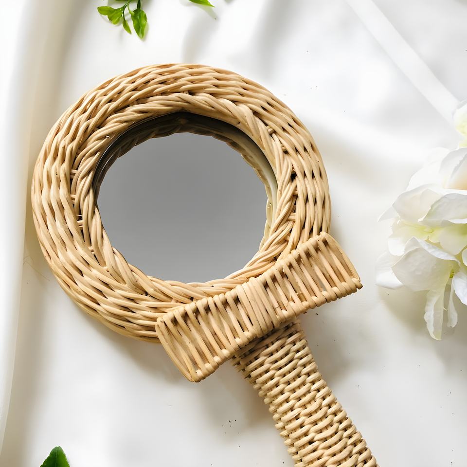 Rattan hand mirror